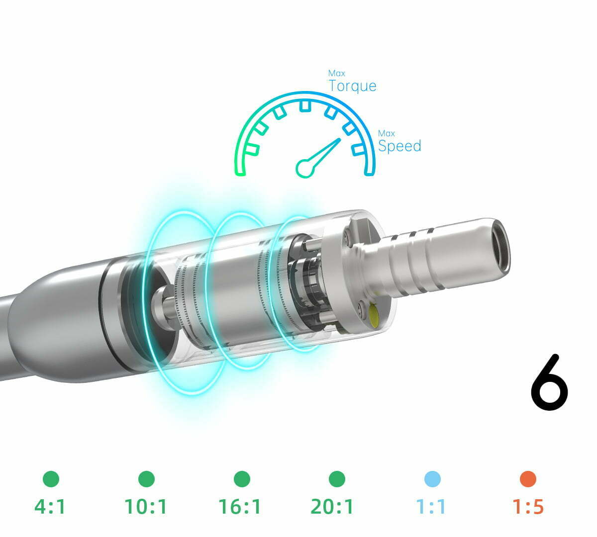 - Viteza variabila in fuctie de piesa de mana: 2000rpm-40000rpm (1:1) 100rpm-2500rpm(16:1) 10000rpm-200000rpm(1:5)