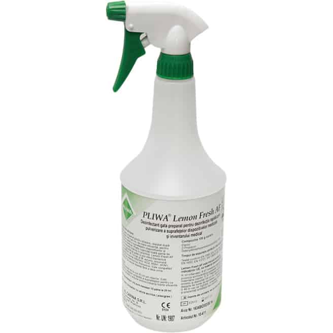 PLIWA Lemon Fresh AF este un preparat gata de utilizare performant dezvoltat conform celor mai noi tehnologii pentru dezinfectare rapidă, bazat pe alcool și QUAT, eficient în sensul Legii dispozitivelor medicale. Datorită formulării sale prietenoase pentru piele, PLIWA Lemon Fresh AF oferă o utilizare sigură.