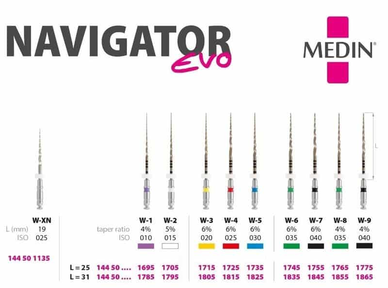 Acele endodontice rotative Navigator EVO de la Medin au fost construite pentru a raspunde celor mai inalte cerinte referitoare la capacitatea de taiere, rezistenta si flexibilitatea sistemelor rotative.