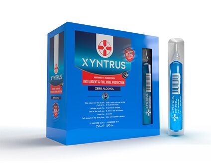 Este prima și singura apa de gura BIO din lume, care, prin formula sa inovatoare și patentată, oferă o capacitate ridicată de eliminare a bacteriilor gram-pozitive și gram-negative din cavitatea bucală și de a inactiva învelișul lipidic al virusurilor precum SARS. -CoV-2, herpes simplex tip 1, N1H1 etc. în gură/salivă. Xyntrus™ dispune de tehnologia inovatoare EBE™ pentru bioîncapsularea moleculelor și enzimelor deținute de Brix USA LLC. Componentele Xyntrus™ și EBE Technology™ reduc încărcătura virală în cavitatea bucală cu o eficacitate de peste 99,99% conform studiilor științifice efectuate la universități și centre de cercetare prestigioase din Argentina, Columbia și Spania. Scăderea încărcăturii virale reduce riscul de răspândire a bolilor virale sau bacteriene. D-limonen bioîncapsulat cu EBE Technology™ exclusiv, 500ml