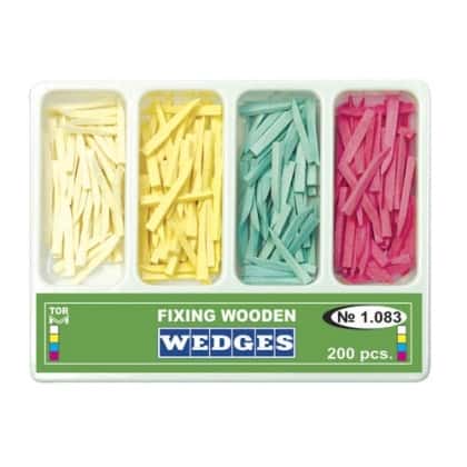 Kit 200 pene lemn asortate alb + albastru + galben + roz – 1 kit x 200 pene lemn interdentare (50 pene fine scurte albe + 50 pene fine lungi galbene + 50 pene medium scurte albastre + 50 pene medium lungi roz)