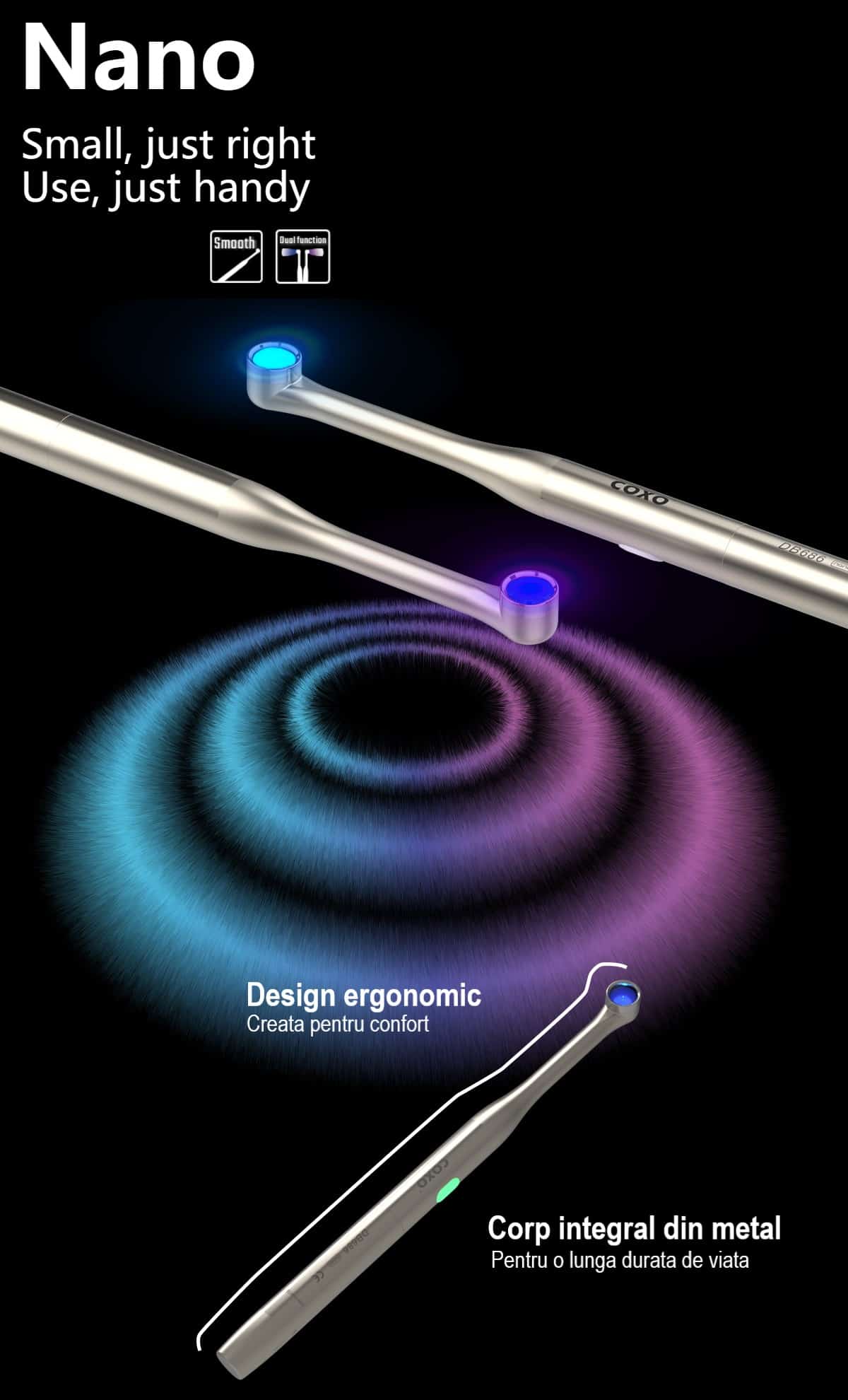 3. Buton on/off ce indica modul de operare lampa foto/detectie carie