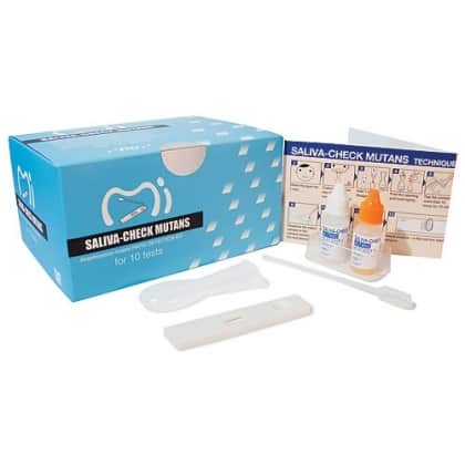 Saliva-check mutans – test pentru identificarea bacteriei Streptococcus Mutans, bacterie ce are un rol important in aparitia cariilor dentare. Testul ajuta la evaluarea riscurilor de carie la pacienti.