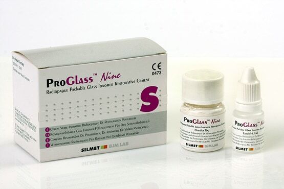 Silmet Pro Glass Nine este un ciment glassionomer nelipicios, radioopac, pentru obturatii cu estetica exceptionala . ProGlassNine se remarca prin continut ridicat de fluoruri si biocompatibilitate ridicata, asigurand o adeziune chimica foarte buna, atat la smalt cat si la dentina fara a fi necesara demineralizarea. Rezistenta ridicata la absorbtia apei permite realizarea tratamentului intr-o singura sedinta. Datorita radioopacitatii asigura diagnoza usoara postoperatorie.