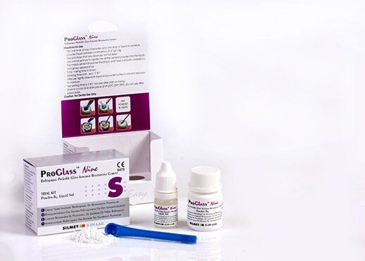 Silmet Pro Glass Nine este un ciment glassionomer nelipicios, radioopac, pentru obturatii cu estetica exceptionala . ProGlassNine se remarca prin continut ridicat de fluoruri si biocompatibilitate ridicata, asigurand o adeziune chimica foarte buna, atat la smalt cat si la dentina fara a fi necesara demineralizarea. Rezistenta ridicata la absorbtia apei permite realizarea tratamentului intr-o singura sedinta. Datorita radioopacitatii asigura diagnoza usoara postoperatorie.