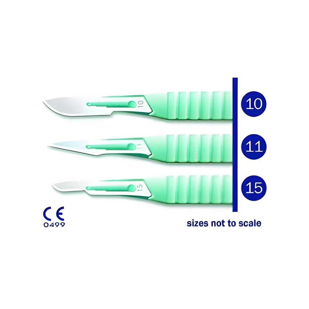 SMI Bisturiu cu maner unica folisinta Lama din oțel carbon foarte ascuțită. Mânere proiectate ergonomic pentru o mai bună simțire și precizie. Scară gradată pe mâner pentru confort. Forma de lamelă imprimată pe cutii pentru identificare și selecție ușoară.