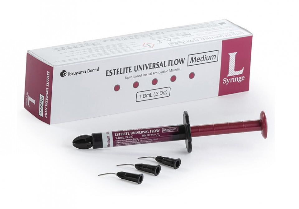 - Universal Flow Medium este un compozit fluid cu vâscozitate intermediară cu caracteristici unice;reologia sa deosebită dezvoltată de Tokuyama a redus cu peste 60% presiunea necesară pentru extruderea sa (în comparație cu Estelite Flow Quick).