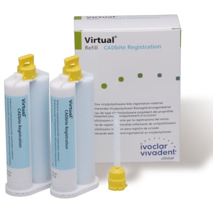 Virtual CADbite Registration 2 x 50ml Ivoclar. Silicon de adiție ce poate fi folosit atât pentru înregistrarea convențională a ocluziei în restaurările protetice dar este scanabil și se folosește și în restaurările protetice CAD/CAM.